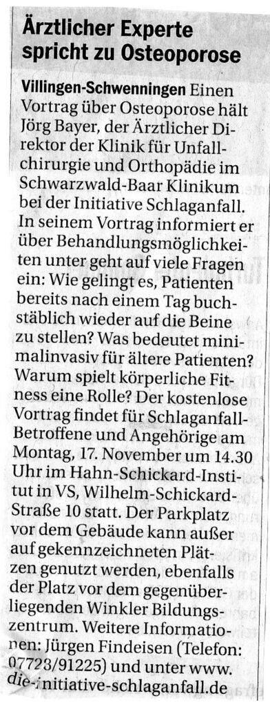 Presseveröffentlichung im Südkurier für den Vortrag von Dr. Bayer im November 2025