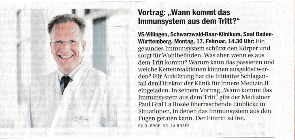 Presseveröffentlichung im Südkurier für den Vortrag von Prof. La Rosée im Februar 2025
