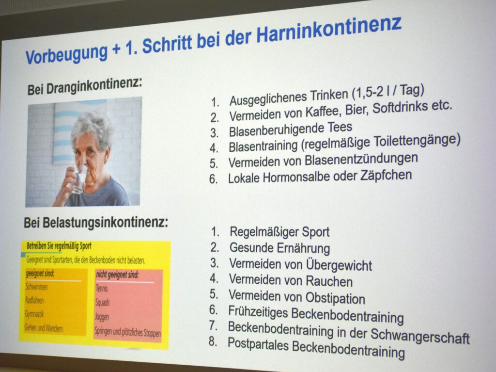 Prof. Schultz-Lampel: “Ganz wichtig ist die Umstellung des Lebensstils, Gewichtsreduktion, mit dem Rauchen aufhören, Beckenbodentraining, auch die Blase trainieren. Andere Möglichkeiten sind eine medikamentöse Behandlung und in einigen Fällen operative Verfahren.“
